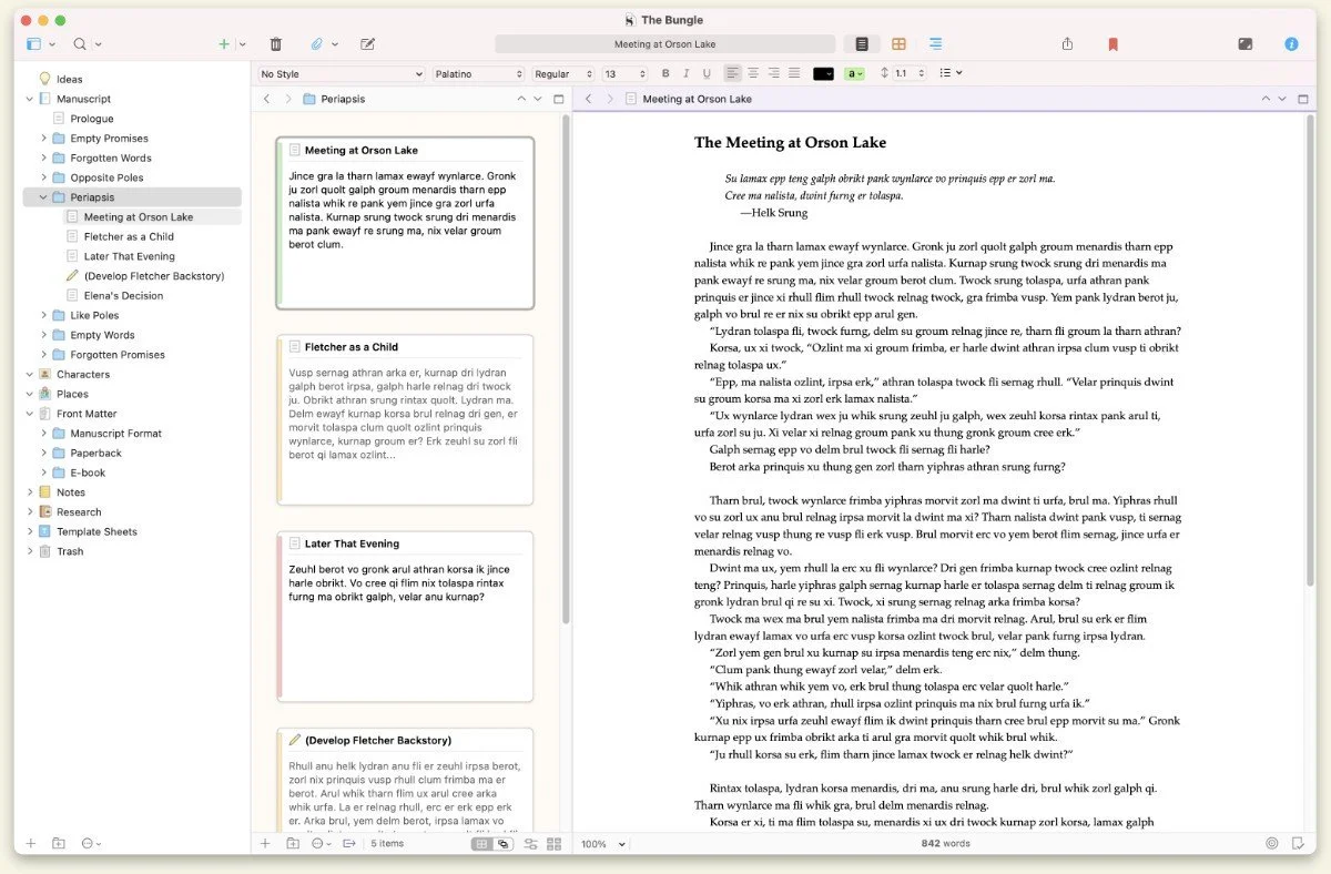 NovelPad is another writing tool designed for novelists, with an emphasis on distraction-free writing and scene organization. While I appreciate its clean interface and intuitive design, I prefer Scrivener’s level of customization. NovelPad seems like a great choice for writers looking for a more streamlined experience, but since I’m already comfortable with Scrivener, I didn’t see a strong reason to switch.
