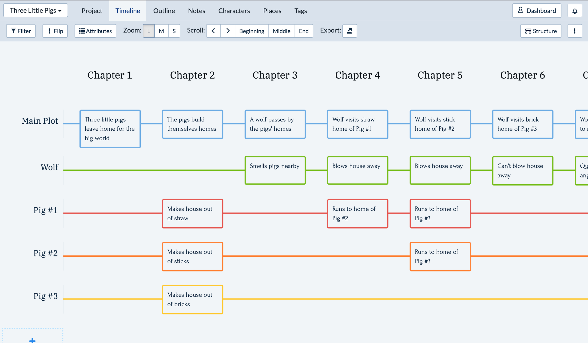 Plottr is a visually appealing outlining tool that helps writers structure their stories using timelines and templates. I was initially intrigued by its simplicity and ease of use, especially when I first started weaving subplots into my story, but I found that Scrivener’s built-in outlining features meet my needs well enough. If I didn’t already have a system in place, I could see myself using Plottr, but for now, it feels like an extra step I don’t need.